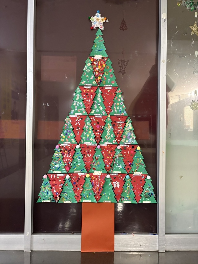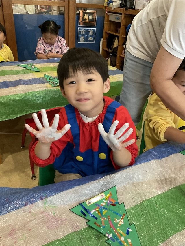 キンダークラス全員と先生達も参加してビックツリーの出来上がりです!!