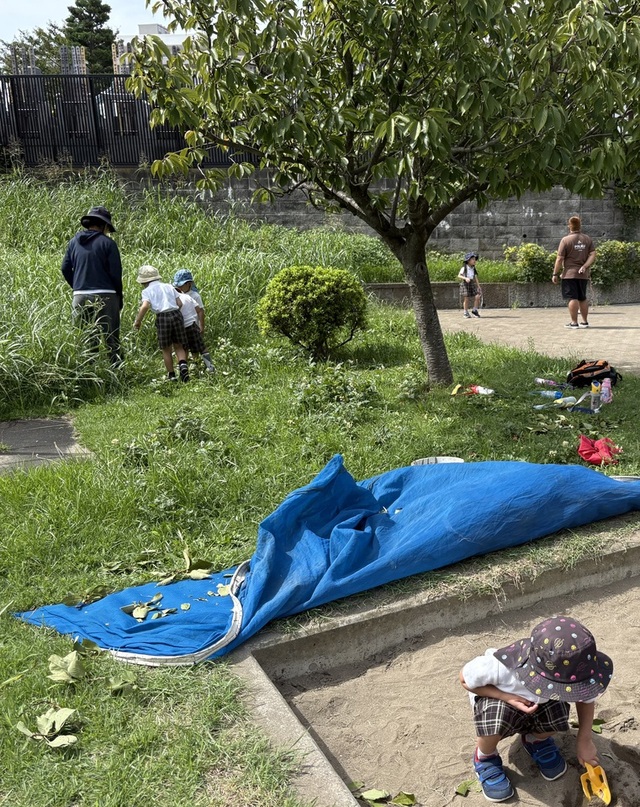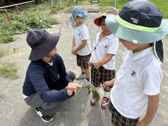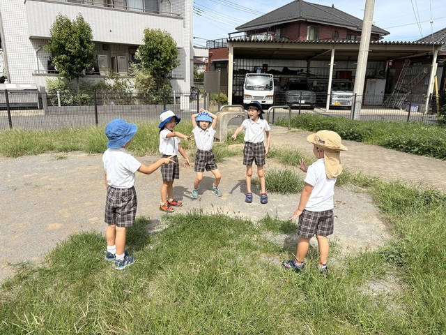 バッタを見つけたり、砂場や滑り台、鬼ごっこに縄跳びの練習と、 元気いっぱいの一日でした!