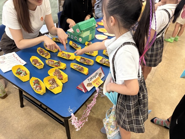 子ども達が手作りしたアクセサリーや食べ物がずらりと店頭に並びました♪