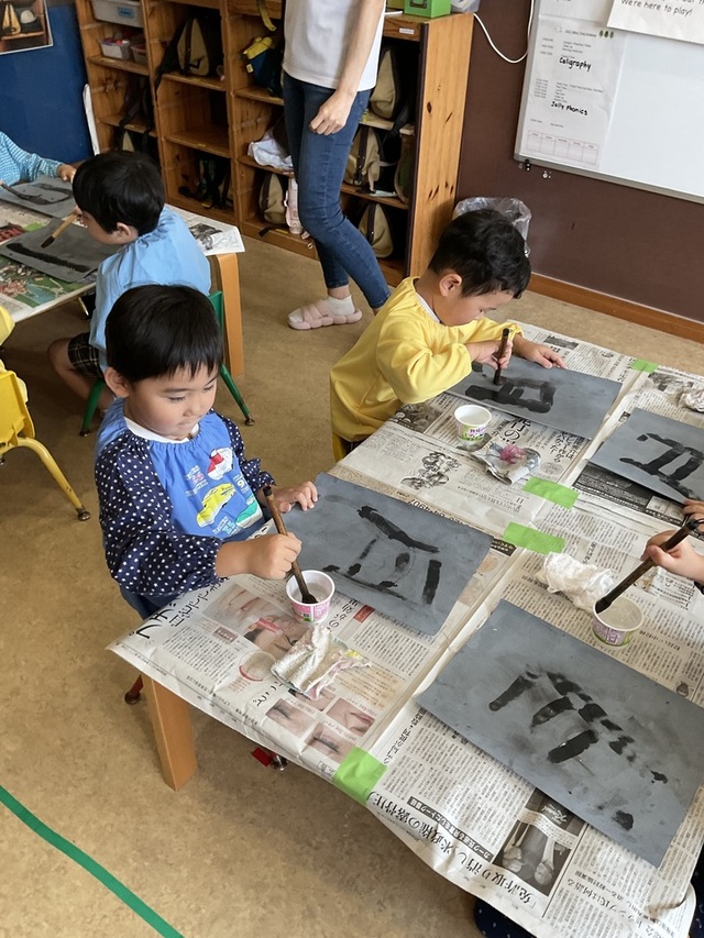 ブログ 年中クラス 習字レッスン 年中クラスでは、習字に挑戦して「月」の字を書きました。 また、中秋の名月にちなんでお団子アートも制作し、可愛くデコレーション! 秋の風情を感じながら楽しく活動できました♪